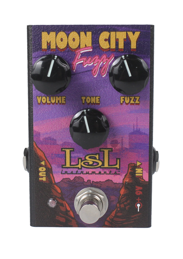 MOON CITY FUZZ is a signature fuzz pedal from Moon City Masters, delivering rich, classic fuzz tones with easy control. Adjust Volume to set your output level and use the Tone knob to shape your sound from deep bass to bright treble. It features standard ¼ inch input and output jacks and runs on a 9V DC regulated adapter with a 2.1mm negative center jack. With a low power consumption of 20mA, it’s built for reliable performance on any pedalboard.